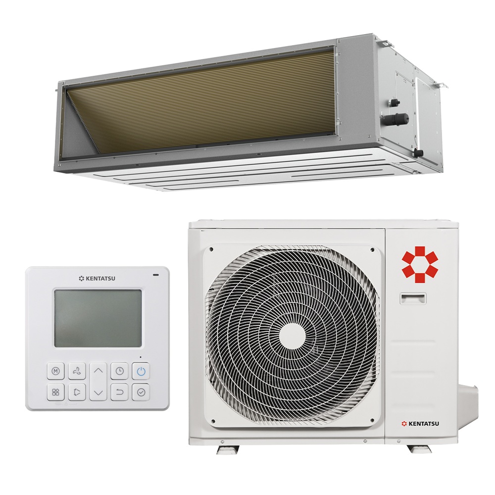 <p>Эта сплит-система канального типа Kentatsu разработана для обслуживания больших помещений площадью до 160 м², сочетая средненапорную продуктивность и возможность подачи свежего воздуха. Установка внутреннего блока в монтажном пространстве подвесного потолка обеспечивает аккуратность и незаметность, а режим обогрева и охлаждения с мощностями 18,18 и 16,12 кВт позволяют работать при широком диапазоне температур (от -15 °C для охлаждения до -7 °C для обогрева).</p>